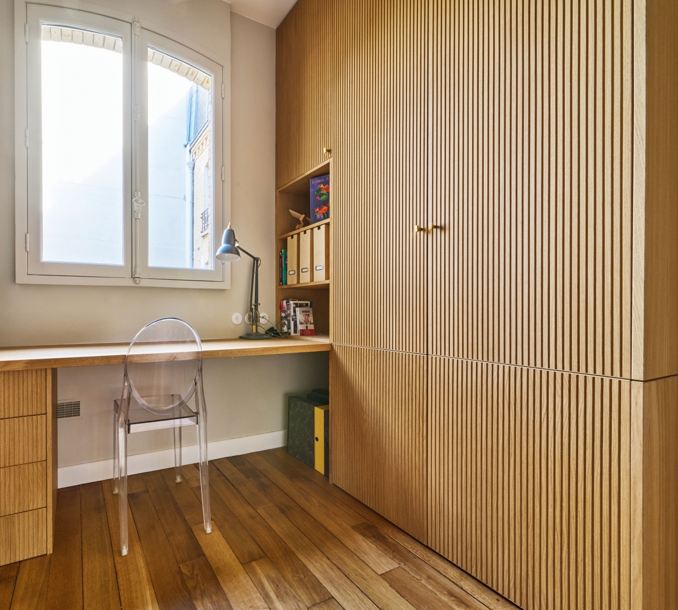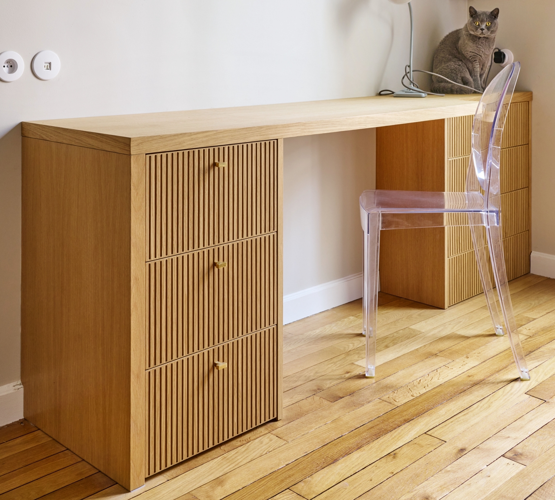 Bureau et dressing en chêne cannelé